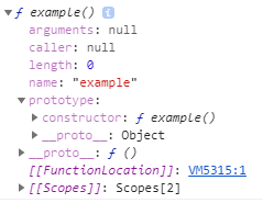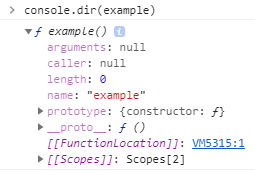 위 대로 코딩을 하면 example()함수 객체가 생성되게 됩니다. 그럼 example()객체의 속성들을 살펴볼까요?
