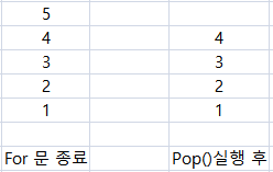 - For문을 통해 1~5 숫자를 스택에 Push한다.
